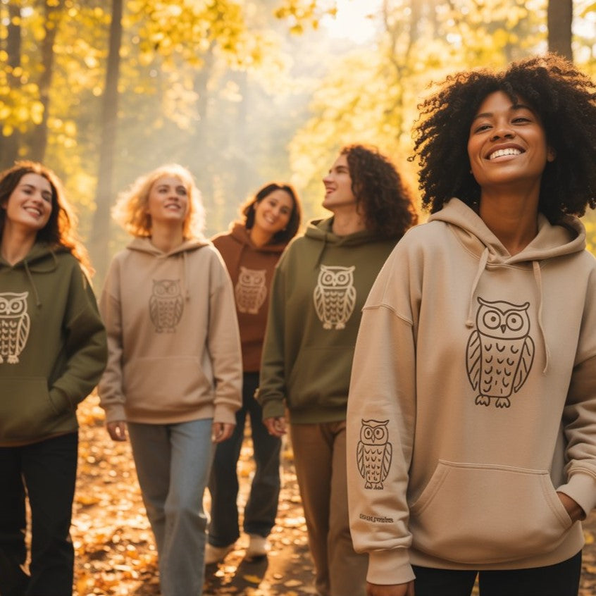 Step into autumn with Dudeily’s cozy, owl-inspired fashion. This fall, wrap yourself in warmth and wisdom with ethically made sweatshirts, hoodies, and tote bags-each crafted from organic cotton and built for conscious souls.